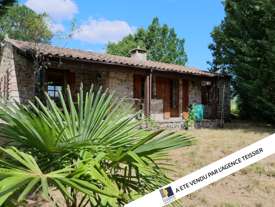 VENDU - 07140 Chambonas : Exclusivité Maison en pierre de plain pied. Située à 5 min du village, en promontoire et proche de la rivière, cette maison au charme intemporel offre une superficie d'environ 85 m². Parfaitement exposée sur un terrain d'environ 2600 m², elle se situe au calme. 2 chambres, séjour et terrasse couverte. "honoraires agence à la charge du vendeur"
