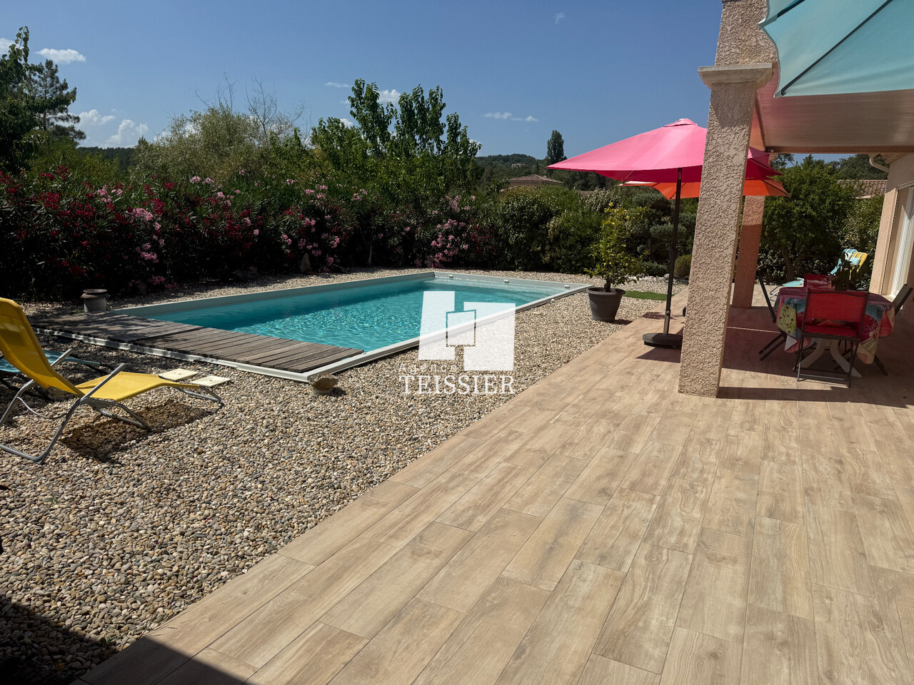 Confortable et agréable, elle offre une lumineuse pièce à vivre de 77 m² ouverte sur l'espace extérieur, quatres chambres, deux salles d'eau et un garage.