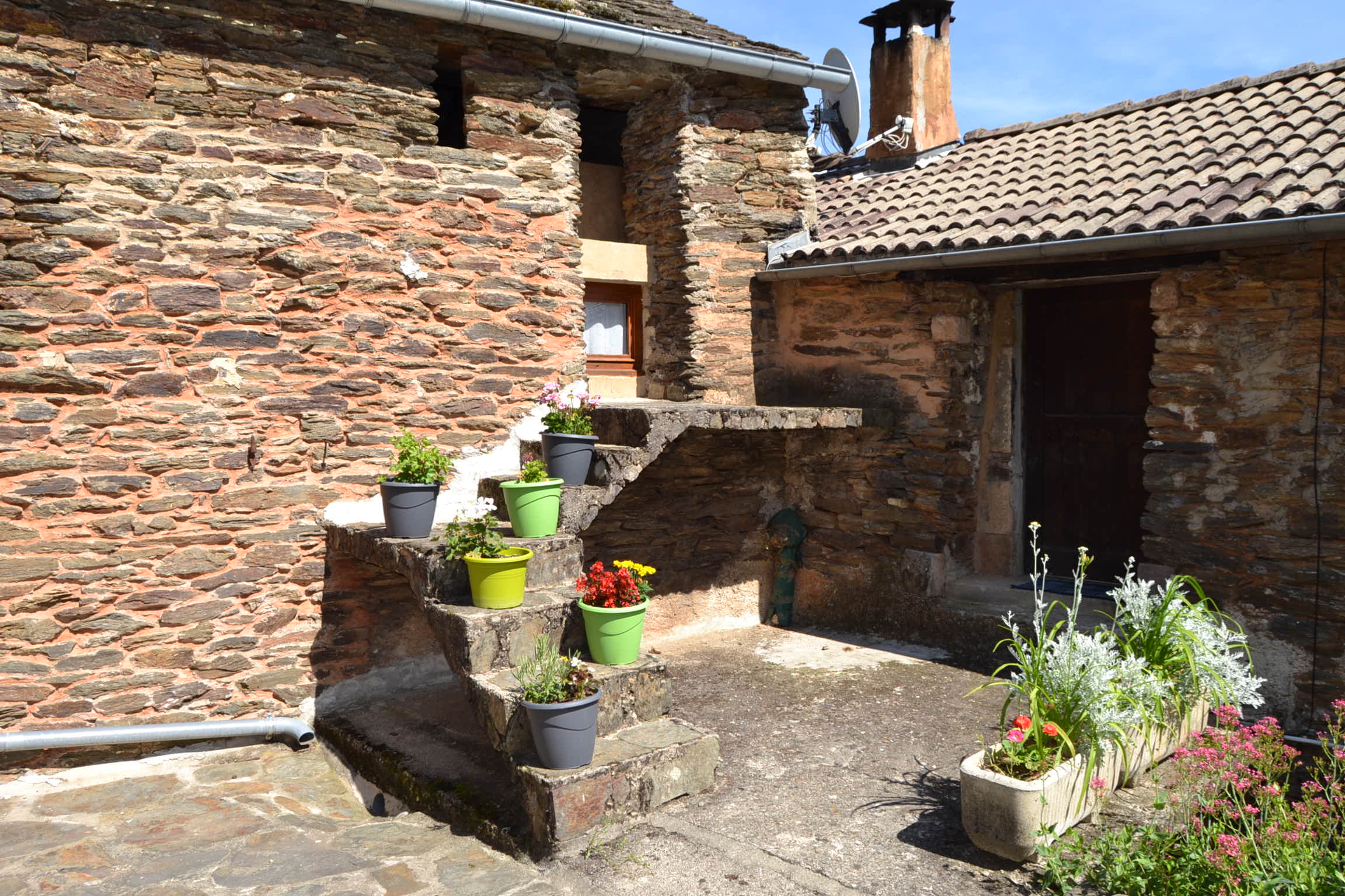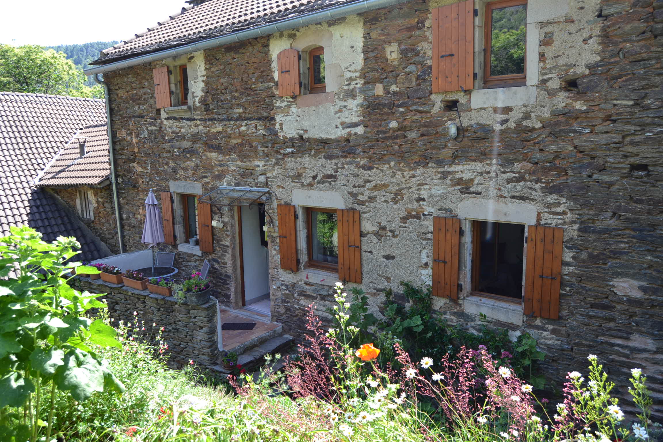 Pièces à vivres de plain pied, patio, terrasses, 5 chambres, dépendances, jardin avec source et potager..