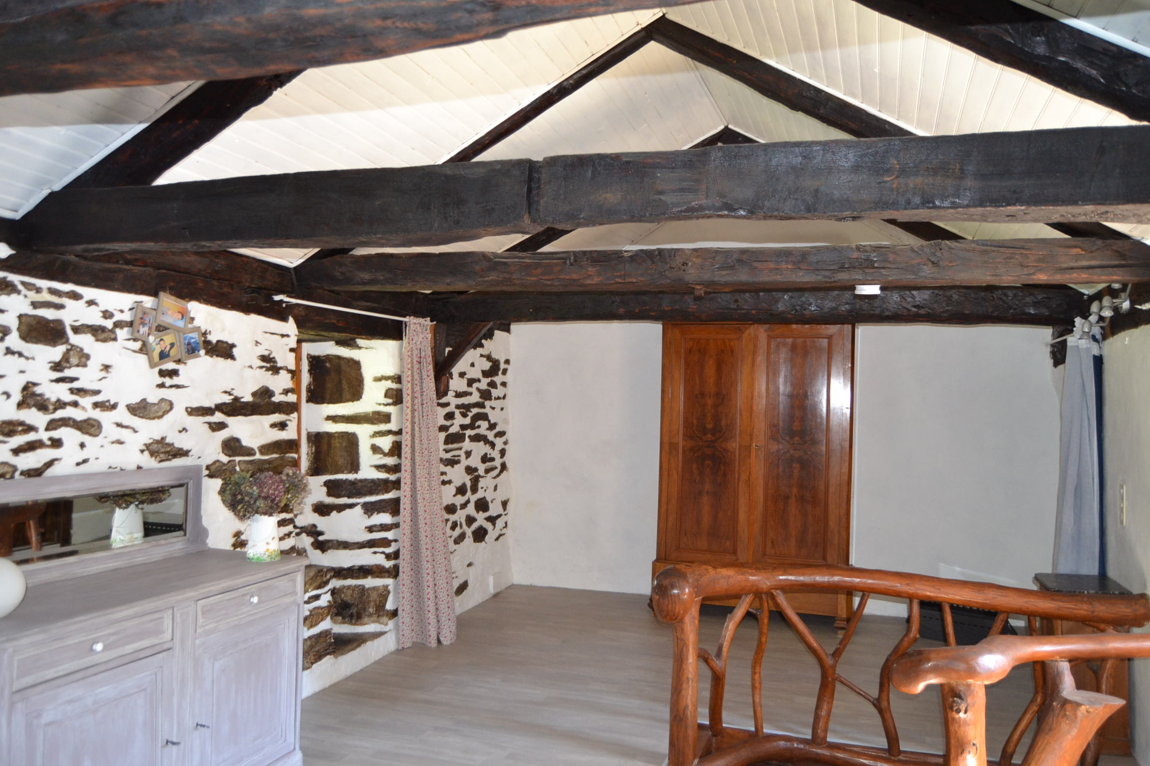 Située à environ 15 min du village, dans un charmant petit hameau, cette bâtisse d?architecture typiquement ardéchoise offre un confortable et atypique lieu de vie.